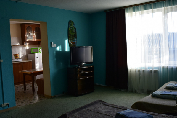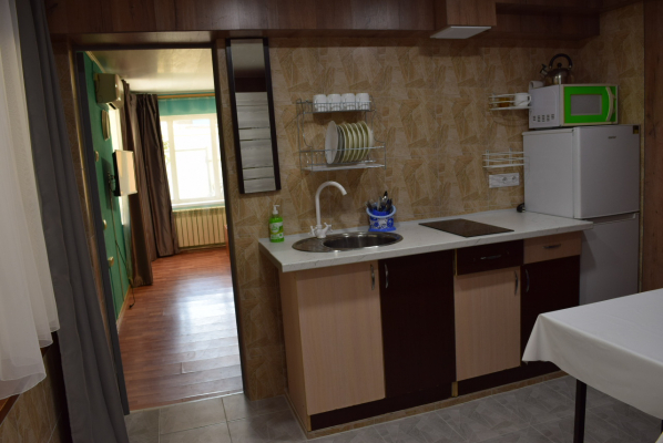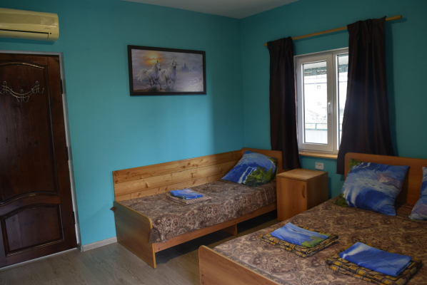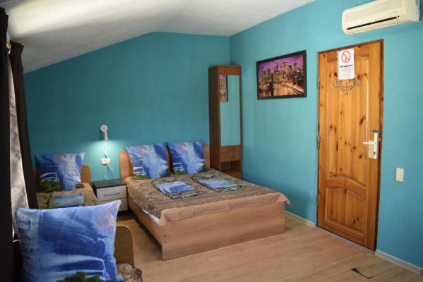 1й этаж номер на 2-4 места, широкая 2х спальная кровать и раскладывающийся диван, душ туалет в номере, в номере своя кухня. Зона отдыха во дворе.