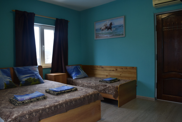 3й этаж номер на 2-3 места, душ туалет в номере, кухня на этаже для 3х комнат, свой балкон 3 на 3 метра с видом на море.